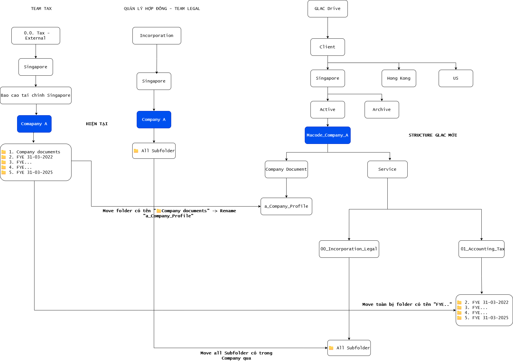 | 4 | Tạo thư mục | IT (Setup automation tự động) | Hệ thống automation khởi tạo toàn bộ cấu trúc thư mục trên GLAC Drive |